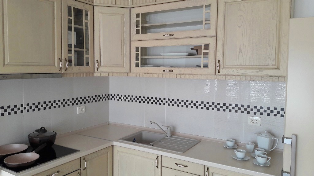 Lux Das Apartment nimmt die gesamte 8. Etage des Gebäudes ein, das aus der Höhe der 8. Etage einen atemberaubenden Blick auf das Meer, die Berge und die ganze Stadt bietet. Loggien haben eine hohe Betonbrüstung, um die Sicherheit von Kindern und Erwachsenen zu gewährleisten.