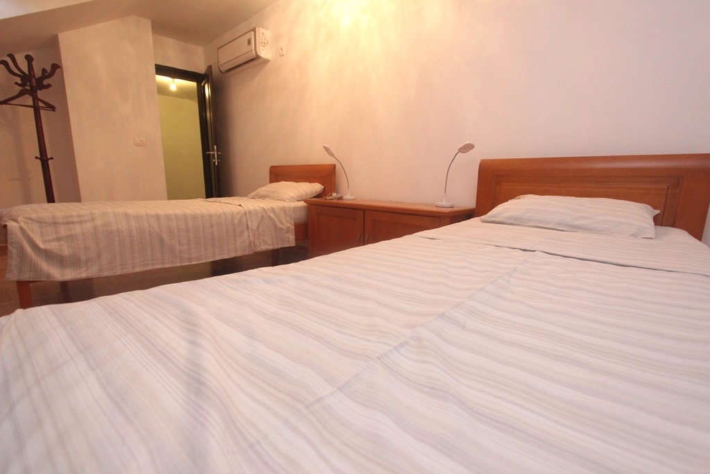 Die Gesamtnutzfläche des Hotels (ohne Korridor) beträgt ca. 1000 m2. Ein moderner Aufzug ermöglicht es nur Gästen mit speziellen Karten, in die 8. Etage zu gelangen. Die Sicherheit WIRD auch durch Eine Rund-um-die-Uhr-Videoüberwachung der Hauptein- und -ausgänge dieses Gebäudes gewährleistet. Die Gesamtzahl der Apartments beträgt 8 mit einer maximalen Kapazität von 6 bis 8 Gästen. Jedes ist mit einer vollwertigen Küche aus Naturholz mit neuen modernen Küchen- und Haushaltsgeräten, italienischem Geschirr ausgestattet.