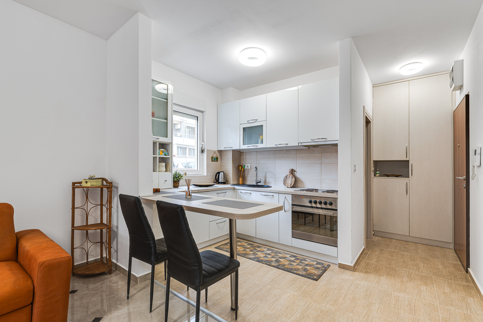 Die Wohnung ist funktional aufgeteilt und verfügt über eine Terrasse, die zusätzlichen Komfort bietet. Sie wird mit allen Möbeln und Geräten verkauft, sodass ein sofortiger Einzug ohne zusätzliche Investitionen möglich ist.