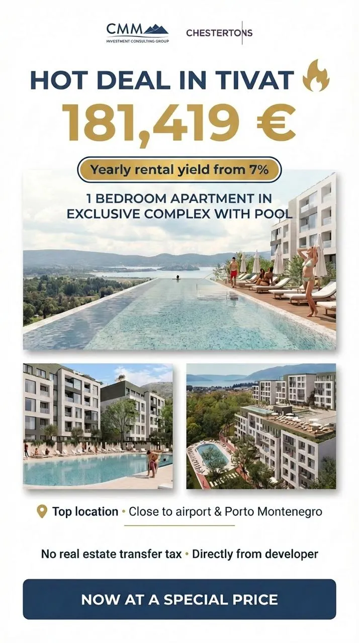 Удобное расположение обеспечивает быстрый доступ к Тивату и всем преимуществам Тиватской ривьеры, что делает проект отличным вариантом как для проживания, так и для инвестиций.