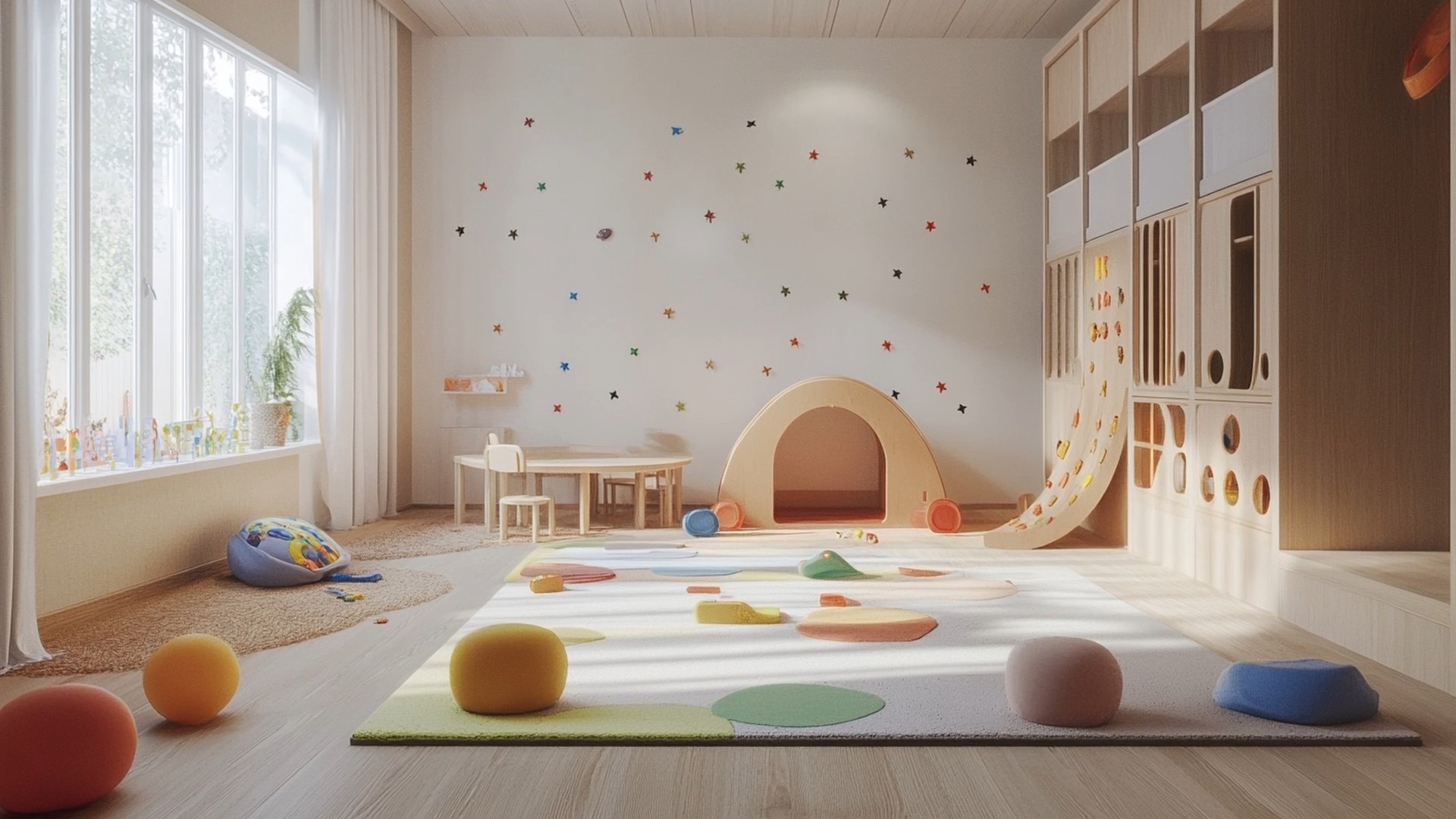 v Ein 50 Quadratmeter großer Kinderspielraum, um sicherzustellen, dass Ihre Kinder eine interessante und sichere Zeit haben, sodass Sie sich etwas Zeit für sich selbst nehmen können