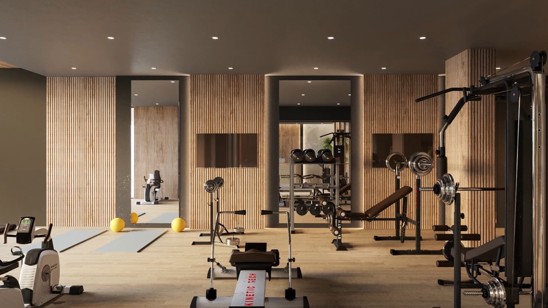 v Ein voll ausgestattetes Fitnessstudio, Outdoor-Yogakurse zur mentalen und körperlichen Harmonie