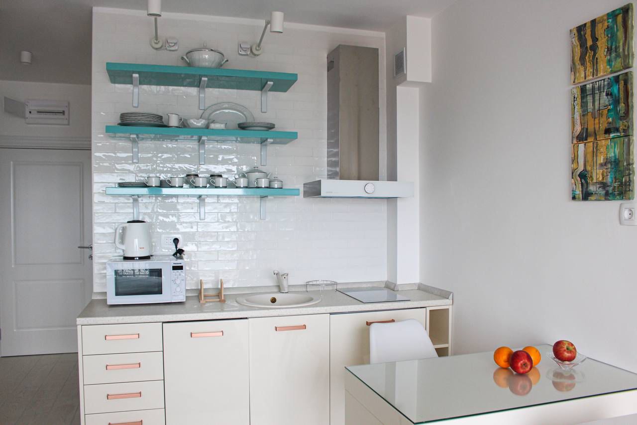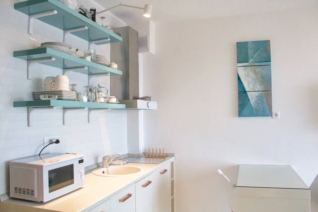 Die Wohnung mit 31 m² bietet einen herrlichen Panoramablick und direkten Zugang zum Strand über einen Weg und Treppen an der rechten Seite des Gebäudes.